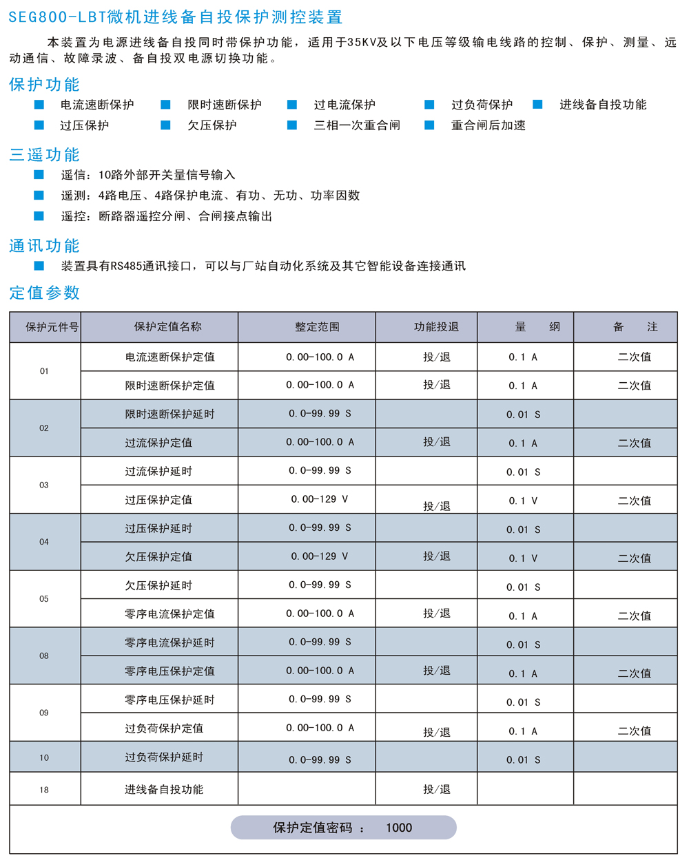 現在位置:首頁(yè)產(chǎn)品總匯SEG800-LBT微機備自投保護測控裝置