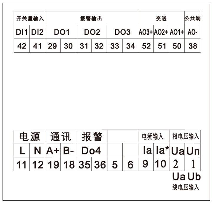 測量:?jiǎn)蜗嚯妷?、電流、有功功率、無(wú)功功率、功率因數、頻率、有功電能、無(wú)功電能