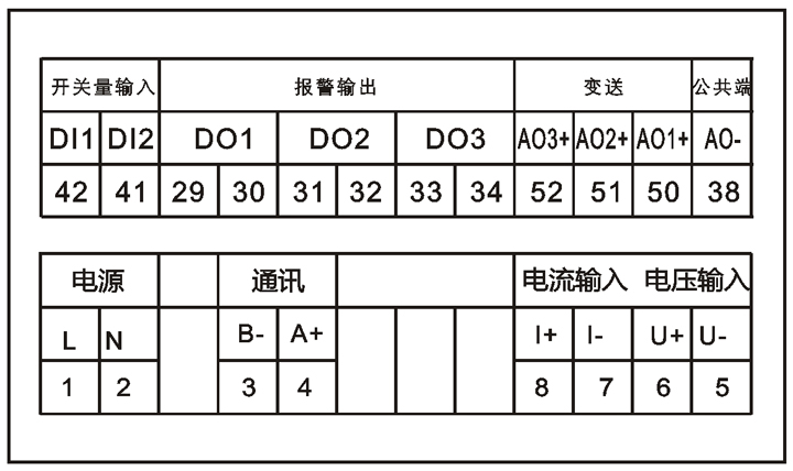 測量:?jiǎn)蜗嚯妷?、電流、有功功率、無(wú)功功率、功率因數、頻率、有功電能、無(wú)功電能