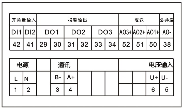 選配:RS485通訊功能、二路開(kāi)關(guān)量輸出(2D0)、二路開(kāi)關(guān)量輸入(2DI)、一路模擬量輸出(1AO)